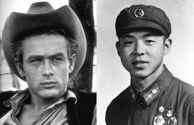 James Dean (1931-1955), o actor norte-americano ícone da geração rebelde da década de cinquenta, no lado esquerdo da fotografia acima. Estarei também certo que, com a remota excepção de algum antigo militante maoista (mas daqueles que eram verdadeiramente