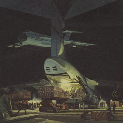 Os meios e material envolvidos nesta outra ponte aérea não têm qualquer comparação com as anteriores. Durante um mês os grandes aviões cargueiros C-5 e C-141 dos Estados Unidos realizaram 567 missões com destino a Israel onde transportaram mais de 20 mil toneladas de material de guerra, incluindo até carros de combate M-60 ou peças de artilharia auto-propulsionada de 155 mm. Directamente pelo ar chegaram 40 caças-bombardeiros F-4 e 36 A-4 e ainda 12 cargueiros C-130. Refira-se que o papel cúmplice da Jugoslávia, disponibilizando a base aérea para reabastecimento, foi aqui representado por Portugal com as Lajes, nos Açores.