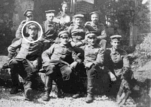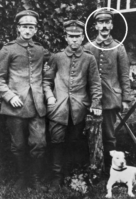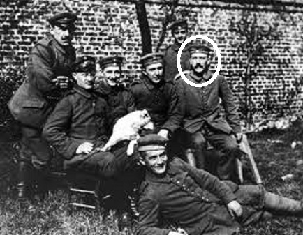 E havia muito trabalho a fazer. Ao contrário de, por exemplo a segunda figura da hierarquia nazi, Hermann Göring, que fora um aviador herói de guerra creditado com 22 vitórias e condecorado com a Pour Le Mérite, Adolf Hitler nunca passara de Gefreiter. Ora Gefreiter é um posto assaz discreto na hierarquia militar alemã, o segundo a contar de baixo, apenas superior à categoria de soldado. A habilidade de Goebbels consistiu em transformar esse modesto registo militar de Hitler durante a Guerra no de um combatente normal, embora empenhado e de convicções firmes desde a primeira hora. É assim que em 1933, numa pesquisa que poderá ser interpretada como uma sessão precoce e politizada do jogo infantil Onde Está o Wally o vão identificar numa fotografia tirada numa das principais praças de Munique acolhendo o desencadear da Guerra em 1 de Agosto de 1914 (abaixo).