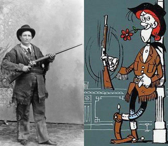 O formato como a comunicação social se dispôs a cobrir os incidentes com os manifestantes que, alegadamente, se preparariam ontem para bloquear acessos à ponte sobre o Tejo depois de se manifestarem diante da Assembleia da República, faz-me lembrar o estatuto espacial de que gozava Calamity Jane na galeria de personagens das histórias de Lucky Luke. Como a senhora, que convictamente explica no vídeo abaixo que se dirigiu tranquilamente para os acessos à ponte como se a coisa fosse um convite da policia, ela não parece ser propriamente uma fora da lei empedernida como os Dalton, Jesse James ou Billy the Kid, será apenas uma daquelas pessoas assim com uns comportamentos mais bizarros como acontecia com aquela velha legenda feminina do Oeste…