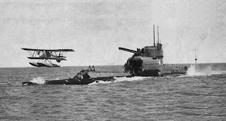 Nessas circunstâncias já só passava a fazer algum sentido incluir aeronaves nos submarinos de maiores dimensões, como era o caso do grande Surcouf francês de 1934 (3.300 toneladas de deslocamento, acima) ou então a gigantesca classe I-400 japonesa (6.600 toneladas) transportando três hidroaviões. Os problemas irresolúveis é que os grandes submarinos eram maus submarinos, lentos a submergir, e o emprego dos hidroaviões limitado, porque se precisava de mar calmo para amararem.