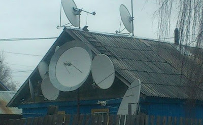 Fotografia obtida na Rússia, o proprietário desta casa parece ter uma obsessão para se manter amplamente conectado com o resto do Mundo. Da profusão de parabólicas direccionadas para todo o lado também se poderá deduzir que, naquele país, os serviços de televisão por cabo serão uma porcaria…