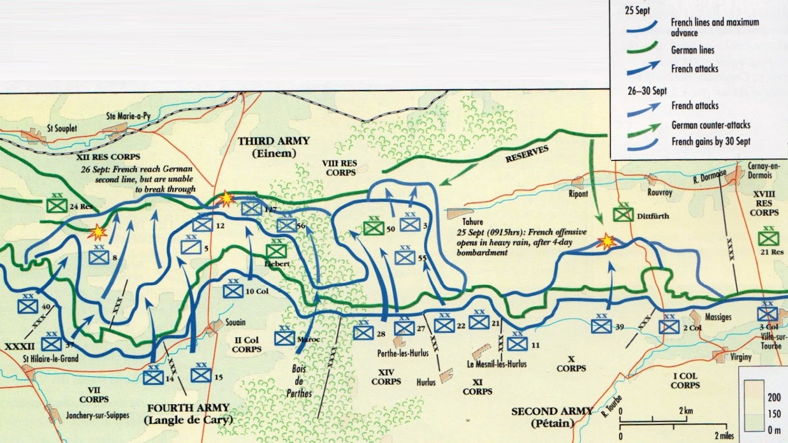 alemães 81.000 para o defenderem. A acção recebeu o nome de Segunda Batalha da Champanhe. Com estas contingências tácticas a localização das batalhas da Primeira