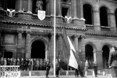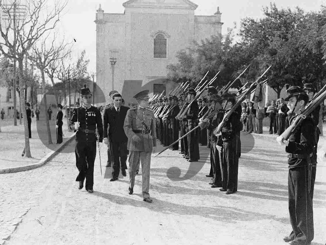 Na fotografia acima de Outubro de 1923, a cerimónia da abertura do ano lectivo do Colégio Militar é distinguida pela presença simultânea tanto do Chefe do Estado, Manuel Teixeira Gomes (à esquerda) quanto do Chefe de Governo, António Maria da Silva (ao centro, cumprimentando-o), diante da continência do anfitrião, o director do Colégio Militar, general Bernardo de Faria e Silva. Nunca mais as cerimónias oficiais do Colégio Militar conseguiram congregar a presença simultânea de ambas as figuras mais importantes do Estado. Após do Golpe Militar de 28 de Maio de 1926, os efectivos de alunos do Colégio Militar sofrem uma pequena mas abrupta queda até 1930 (413 alunos) depois retomada até 1935/36 (de novo 460 alunos) com a progressiva instalação das instituições do Estado Novo. Mas o apoio do Estado Novo ao Colégio Militar é, no mínimo, um apoio equívoco. Nesta fotografia abaixo da cerimónia da abertura do ano lectivo de 1937, continua a ser o Chefe do Estado, Óscar Carmona (ex-aluno 24/1882) a presidir à cerimónia, mas quem se identifica por detrás de si e do comandante de batalhão (aluno 251 - Hidalgo Barata) é Santos Costa, subsecretário de Estado da Guerra, eminência parda do ministério, cujo titular formal era então Oliveira Salazar¹. Nos oito anos que se seguirão, o Colégio Militar vai atravessar um dos piores, senão mesmo o pior momento da sua existência: verá cair os efectivos do batalhão colegial de ⅓, desde os mais de 460 alunos de 1936 até aos 300 com que contava em 1945, o ano do fim da Segunda Guerra Mundial.