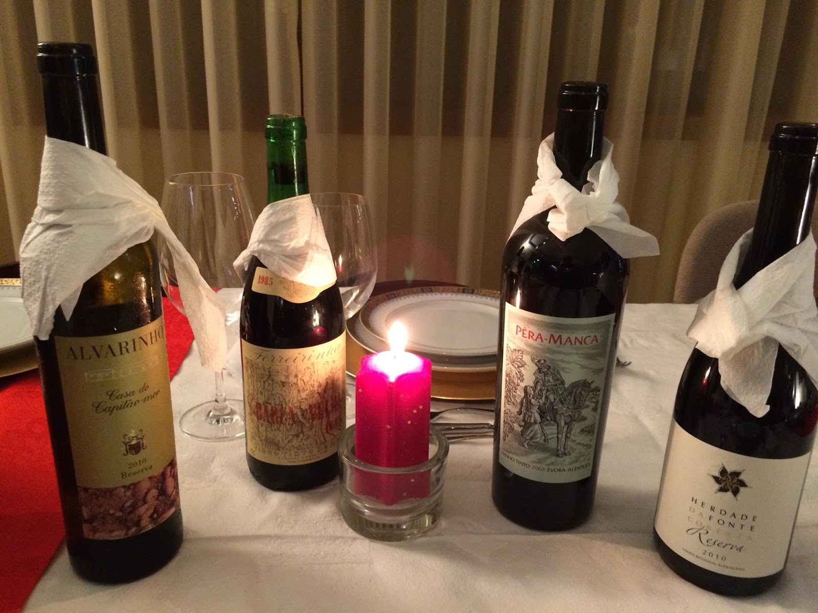 Continua a intrigar-me esta capacidade para as pessoas se exporem excessivamente no facebook. Elas podem dizer-nos imenso e, por vezes, mais do que aquilo que os visados quereriam. Estas duas fotos são dos vinhos da consoada de dois utilizadores que as publicaram no Natal e que eu aguardei pacientemente que se escoasse um mês para que a própria mecânica do facebook tornasse mais cansativa a tarefa da identificação dos autores. Sendo o tópico o mesmo repare-se o contraste, a começar logo pelo local da fotografia, a bancada da cozinha e com as garrafas aparentemente ainda por abrir no caso acima, já na sala, abertas, com o devido cachecol, toalha e uma vela a enfeitar no caso abaixo. Em qualquer dos casos intriga-me a multiplicação das escolhas (três tintos e, no caso abaixo, ainda mais um verde?), tendo em conta que se está a escolher o vinho para uma ou, quiçá, duas refeições. E depois há as escolhas. O budget do escanção que tirou a fotografia abaixo foi decerto um múltiplo do da fotografia acima. Este último, o da foto superior, ao exibir-se no facebook, pretenderá ser reconhecido pela sua sapiência, exibindo aquilo que consideraria a melhor relação entre preço e qualidade. Confere com a informalidade de nos mostrar a sua cozinha. Em contraste, o autor da foto inferior parece ter jogado por aquilo que ele considerará mais seguro e apostado no que haveria de mais impressivo em termos de rótulos. O que também confere com o engalanamento como os exibiu. Não sei se qualquer deles terá ficado com a consciência do que, agindo como o fizeram, puderam dar a serem lidos nas suas pretensões, como acabei de o fazer...