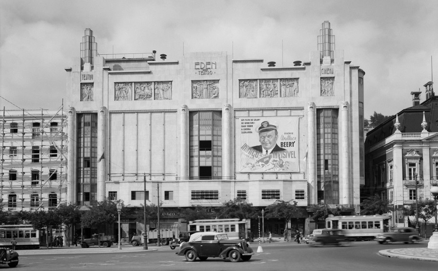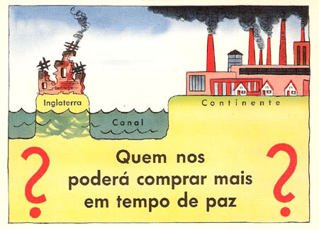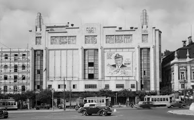 Continuando uma viagem iniciada em poste anterior pelo passado e pelas fachadas da Avenida da Liberdade, nesta outra foto descemo-la e chega-se à Praça dos Restauradores, diante do cinema Éden, onde a fita em exibição era, nesse pacato dia de Verão de 1940, O Inimigo Invisível (Thunder Afloat no original, o filme estreara a 9 de Agosto), com Wallace Beery, Chester Morris e Virginia Grey. A acção decorria em 1917 nuns Estados Unidos acabados de entrar na Primeira Guerra Mundial e o inimigo invisível eram os submarinos da marinha de guerra imperial alemã. Tirando o epíteto de imperial, o resto parecia novamente adequado à situação internacional de 1940: a França acabara de ser vencida em Junho e o Reino Unido, isolado, enfrentava agora a Alemanha (e a Itália) sobre o seu próprio espaço aéreo, naquela que veio a ser conhecida por Batalha de Inglaterra. No mar tinha que assegurar, mais uma vez, a segurança das suas vitais linhas de abastecimento dos ataques dos submarinos alemães - a chamada Batalha do Atlântico. Os norte-americanos ainda não se haviam envolvido abertamente no conflito, apoiavam os britânicos, e, como se vê, pareciam também não estar inactivos no campo da propaganda light. Os portugueses sentiam-se disputados pelos dois lados e não submetidos apenas, como agora, aos argumentos do lado pró-europeu (abaixo, propaganda de guerra do Eixo, com uma argumentação estranhamente actual...).