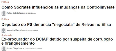 As notícias que eu mais aprecio são aquelas que têm o potencial de, se e quando desenvolvidas, poderem degenerar num embaraço para quem parece aparentemente insuspeito e alheio ao caso quando do seu anúncio. É assim que, recuperando abaixo os cabeçalhos de O Sol e começando por aproveitar as escutas telefónicas, essa instituição nacional que se parece com o ditado das bruxas (não devemos acreditar nelas mas que as há, há), ficámos a saber que um ex-primeiro-ministro, em querendo e estando bem relacionado, pode tentar condicionar a escolha os directores de jornais assim como um presidente de um grande clube de futebol pode fazer o mesmo aos árbitros dos jogos que o seu clube disputa. Azar para Proença de Carvalho que tem conseguido flutuar como rolha de cortiça por cima das vicissitudes da política portuguesa e para os interesses que ele representa. Ficámos também a saber que Miguel Relvas continua em forma nas suas mescambilhas, apesar de aparentemente há muito ter caído em desgraça e abandonado o governo. Azar (mais um...) de Pedro Passos Coelho que assim demonstra que se mostrou incapaz de manter o seu aliado político com rédea curta para não o deixar fazer mais disparates. E ficámos a saber qual uma das explicações possíveis para as razões pelas quais as elites angolanas se movimentavam com tanto à vontade em Portugal, apesar da natureza suspeita de muito do que se ia sabendo que faziam. Azar para a classe dos magistrados justiceiros (linha Cândida Almeida ou Maria José Morgado) quando se levantam as suspeitas de que a essência de um certo tipo de problemas de corrupção (que tanto os indignava) podia afinal radicar em episódio ocorridos em gabinetes ao lado dos seus.