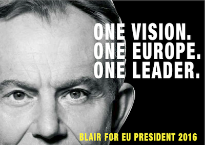 A aventura de Asterix na Córsega termina com a posição intransigente dos corsos quanto à aceitação da supremacia de Roma e de Júlio César: ...para que os corsos aceitem um imperador, terá que ser um imperador corso, numa alusão óbvia à futura ascensão de Napoleão. A atitude faz-me lembrar, na inflexibilidade mas também pelo ridículo, a posição britânica sobre a União Europeia, de quem se diz que só entraram para a organização em 1973 para a sabotar e que só permanecem nela porque, com a proverbial teimosia britânica, nunca perderam a esperança de a controlar a partir de dentro. Por isso, quem imaginou o cartaz abaixo, com Tony Blair como hipotético candidato ao cargo de futuro presidente da União é senhor de uma ironia tão fina quanto a de Goscinny. Tudo isto a propósito de se constatar que já se estava à espera que David Cameron saísse das reuniões de Bruxelas brandindo um acordo que classificaria de um grande triunfo, fosse qual fosse o desfecho das negociações, mas só pelo facto de todos terem que aceitar o resultado de um referendo de desfecho imprevisível mostra que, mesmo substituindo Blair por Merkel, por Juncker, por Hollande, por Draghi, ou por quem mais se queira evocar, não há Visão, não há Europa, não há Líder. Também nisto (para além das dívidas soberanas dos PIGS), parece andar tudo por Bruxelas a navegar à vista...