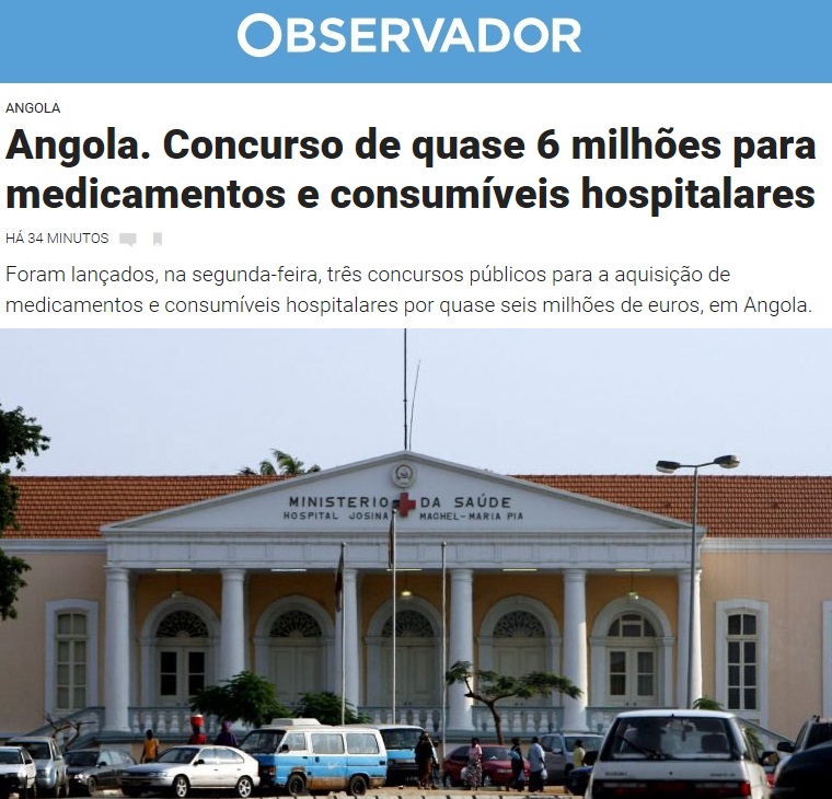 ...precisamente a mesma ingenuidade que ontem aqui manifestei, por ver agora mais outro concurso do estado angolano a ser objecto daquele mesmo destaque noticioso por parte da comunicação social portuguesa. Em adenda, vale a pena realçar que os medicamentos e consumíveis hospitalares valem 26 vezes menos que as viaturas destacadas ontem.