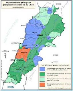Parece ser genético e fazer parte da gramática da disputa política local. É verdade que a localização geográfica do Líbano não ajuda à pacificação, entalado como está entre Israel e a Síria (abaixo), mas esse argumento aplicava-se também à Suíça na época das grandes rivalidades franco-alemãs e ela permaneceu neutral durante as duas Guerras Mundiais… Por outro lado, definido pelas comunidades religiosas, o quadro político libanês é mais complexo e confuso do que o suíço: até 1997, enquanto foi obrigatório mencionar a confissão religiosa do portador do bilhete de identidade, havia 17 comunidades distintas que eram legalmente reconhecidas… – 11 cristãs, 2 muçulmanas (xiita e sunita), druza, judia, ismaelita e alauíta.